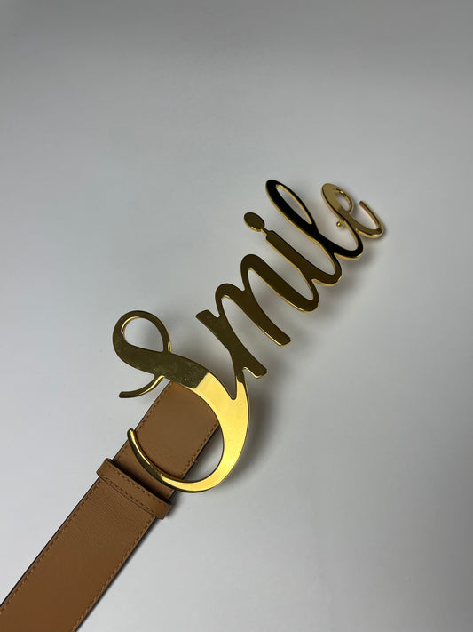 Loewe Smile Calfskin Logo Brown Buckle Belt - 95 CM