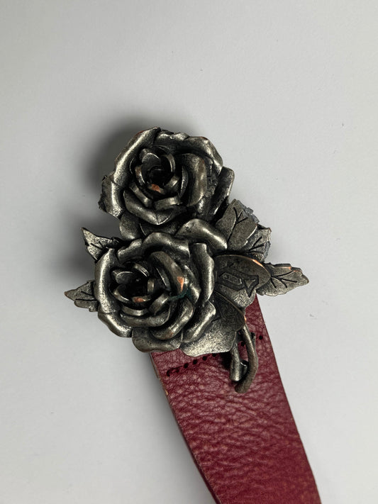 John Galliano Red Silver Roses Leather Belt 2000s - 85 CM