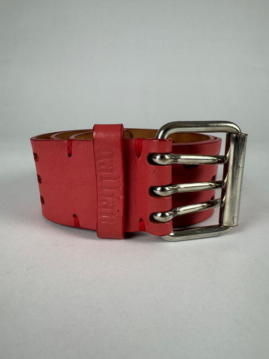 John Galliano Triple Prong Holed Red Gallant Leather Belt 2000s - 80 CM