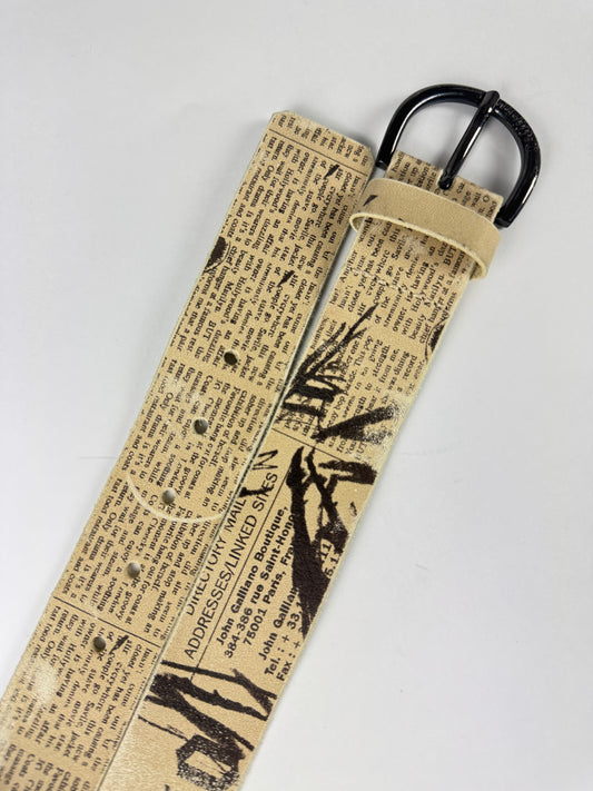 John Galliano Cream Waxed Leather Newspaper Belt 2000s - 85 CM
