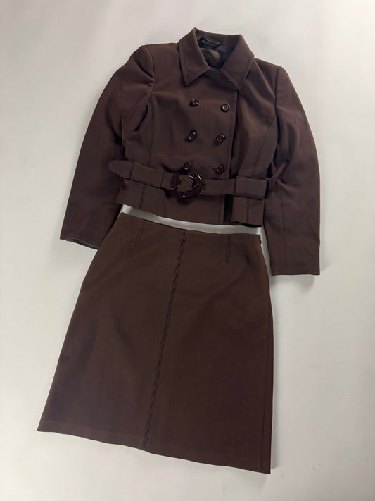 Prada Brown Elegant Cropped Belted Jacket Skirt Set FW 1996 - S