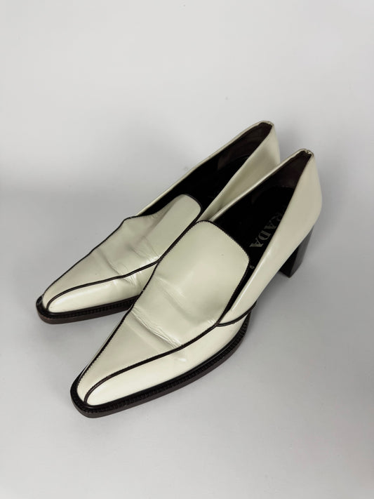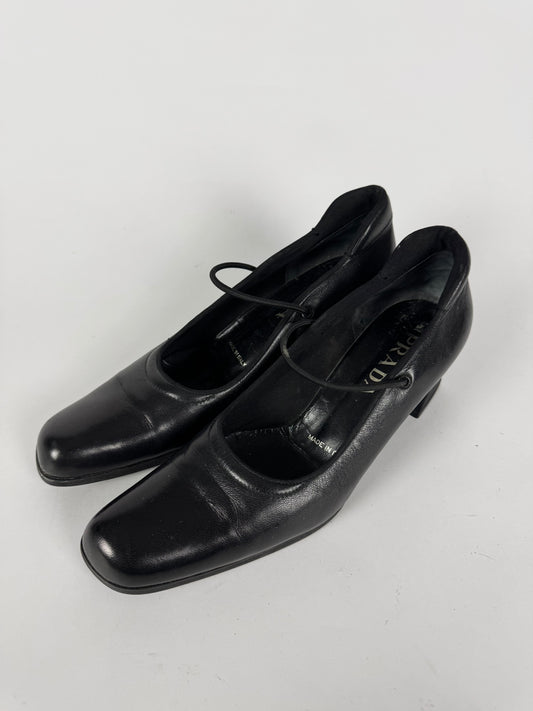 Prada Sharp Leather Bowling Heels Pointed Toe Shoes FW 2000 - 39 IT/39,5 EU