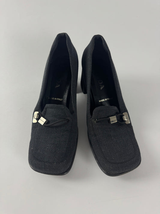 Prada Shadow Grey Block Loafers Heel Pumps FW 1999 - 39 IT/40 EU
