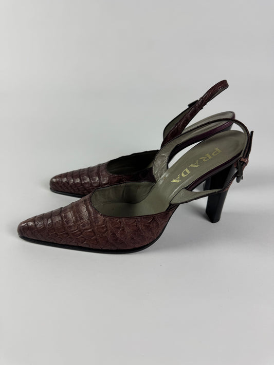 Prada Crocodile Leather Effect Pumps Heels 2000s - 38 IT/39 EU