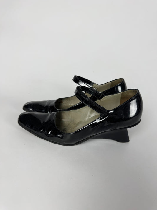 Prada Patent Leather Mary Jane Low Wedges Heels FW 1998 - 39 EU