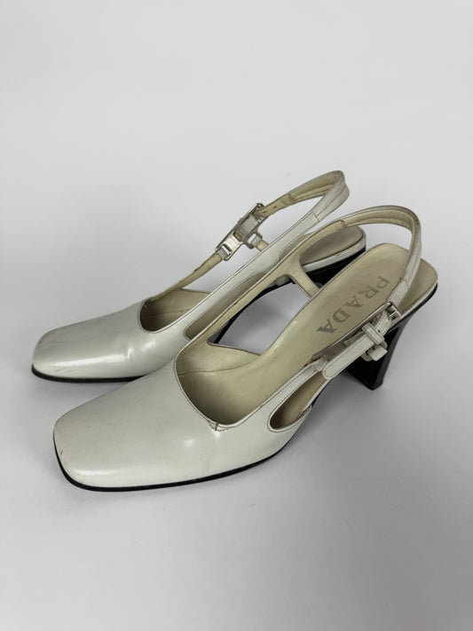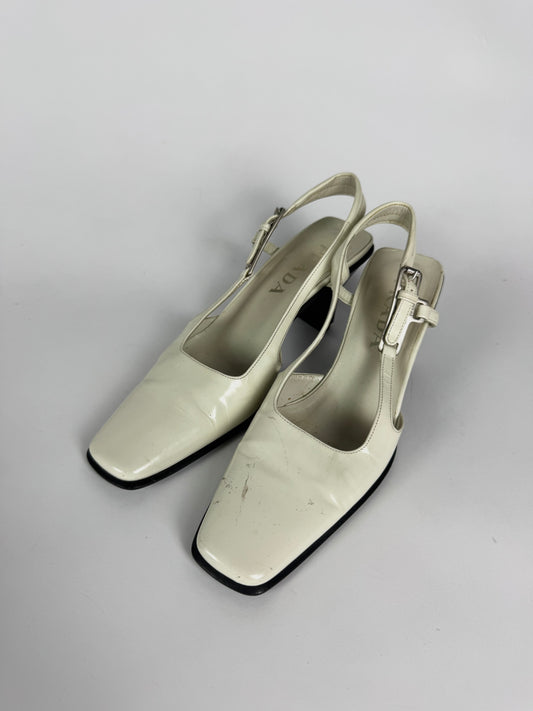 Prada Patent White Leather Slingback Pumps 1990s - 36 IT/36,5 EU