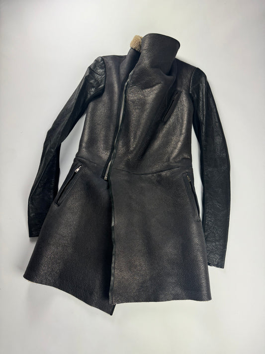 Rick Owens Long Asymmetric Shearling Oblique Coat 2010s - S