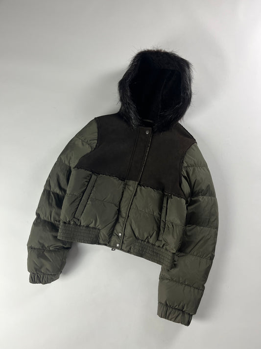 Prada Khaki Leather Down Fur Hood Jacket FW 2007 - S