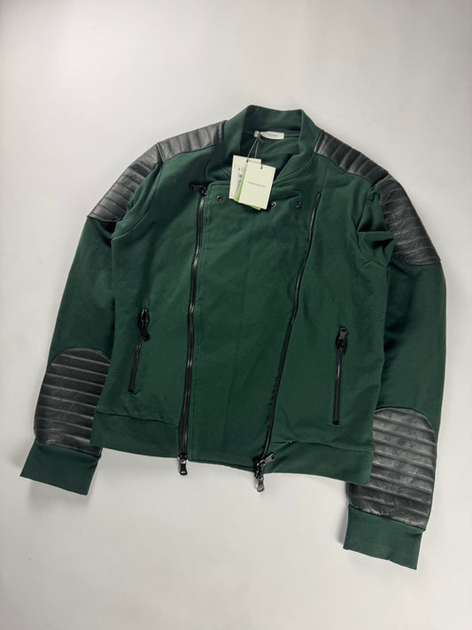 Pierre Balmain Leather Padded Shoulder Double Side Zip Green Biker Jacket - M