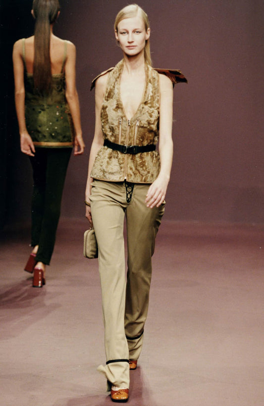 Prada Persian Lamb Buckle Belted Backless Waistcoat Harnais FW 1999 - S