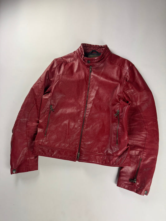 Prada Padded Elbows Red Leather Motor Jacket SS 2000 - M
