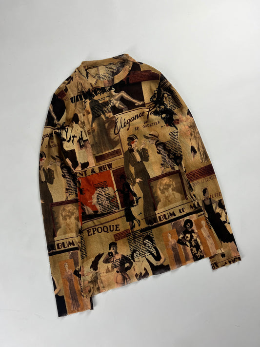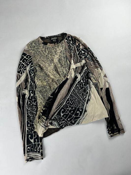 Jean Paul Gaultier Draped Mucha Tatoo Mesh Top 2000s - S