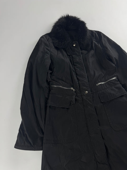Prada Fur Collar Double Zip Nylon Long Coat 2000s - S