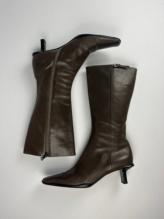 Prada Brown Belted Leather Boots FW 2000 - 38,5 IT/39,5 EU