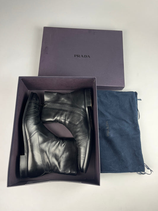 Prada Black Leather Chelsea Ankle Boots 2000s - 45 EU