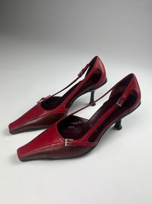 Prada Red Leather Belted Pumps FW 2000 - 37 IT/38 EU