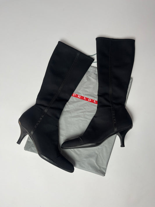 Prada Black Zipped Moto Stretch Boots FW 1999 - 38 IT/39 EU