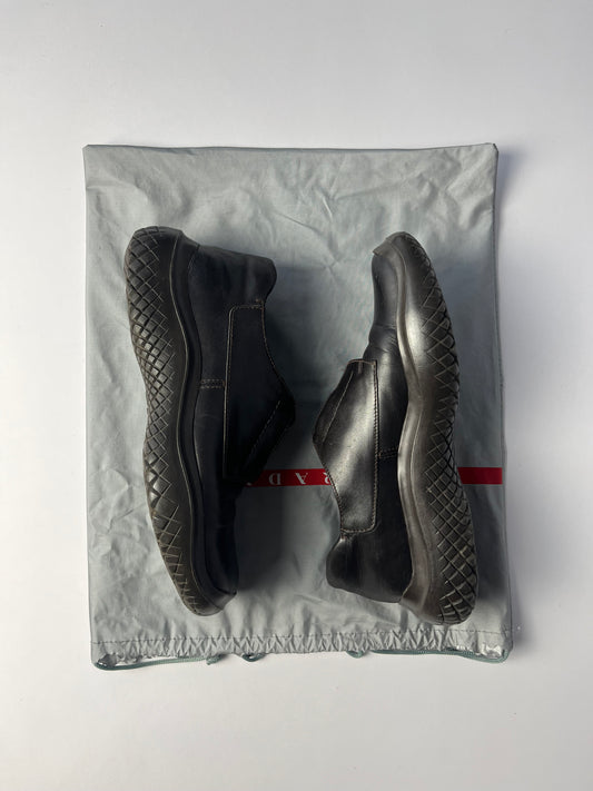 Prada Linea Rossa Black Leather Low Trainers FW 1999 - 43 EU