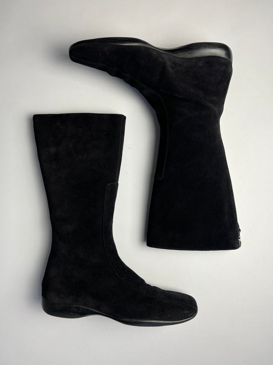 Prada Linea Rossa Black Suede Boots FW 1998 - 38 IT/39 EU