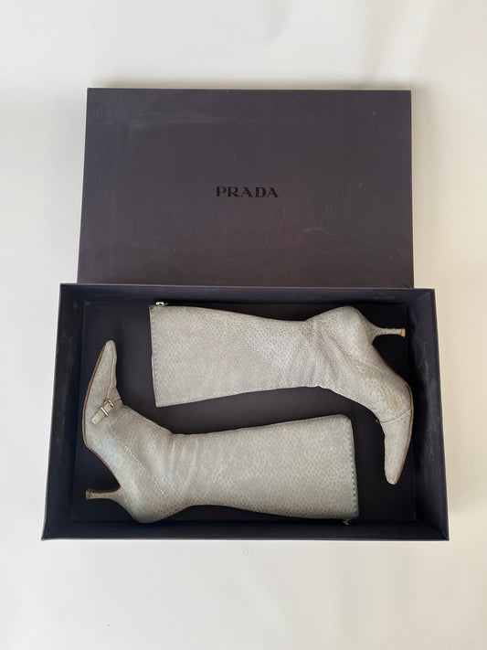 Prada Grey Leather Belted Boots FW 2000 - 39 IT/40 EU