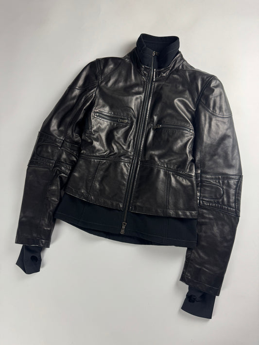 Prada Cuffed Arm Black Leather Moto Jacket SS 2000 - XS