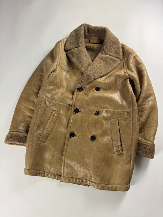 Prada Cream Tan Brown Double Breasted Shearling Leather Coat FW 2006 - L