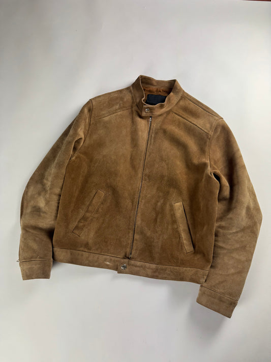 Prada Sample Tan Brown Suede Leather Zipper Moto Jacket FW 1996 - M