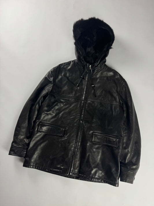 Prada Inside Fur Hooded Leather Jacket FW 1996 - S