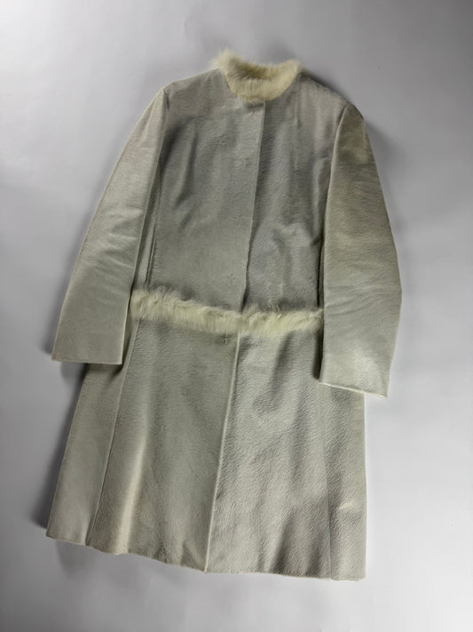 Prada White Heaven Fur Trimmed Pony Hair Leather Coat 1990s - S