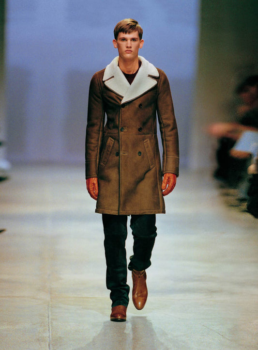 Prada Premium Leather Double Breasted Shearling Coat FW 2005 - M