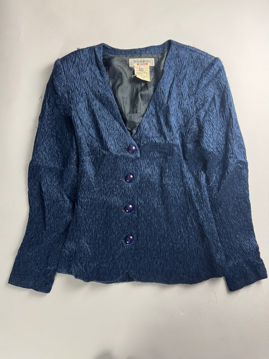 Yves Saint Laurent Rive Gauche Deep Blue Textured Plissé Set 1990s - S