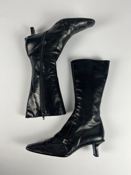 Prada Black Belted Leather Boots SS 2000 - 37,5 IT/ 38,5 EU