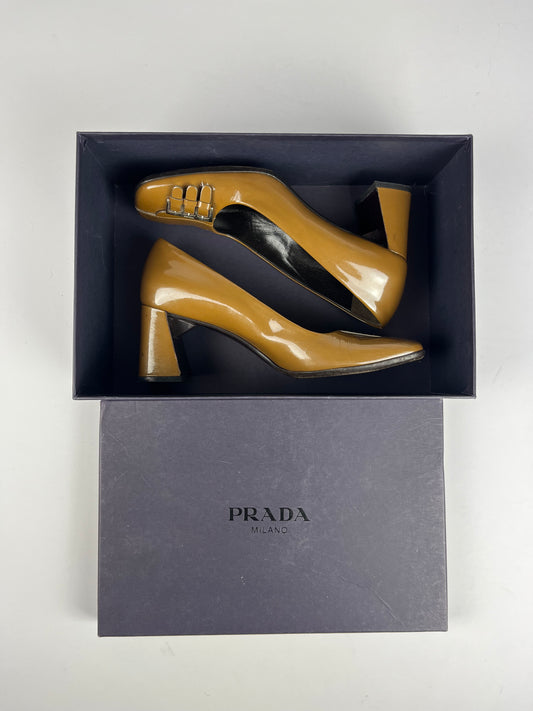 Prada Bright Leather Camel Heels 1990s - 37 IT/38 EU