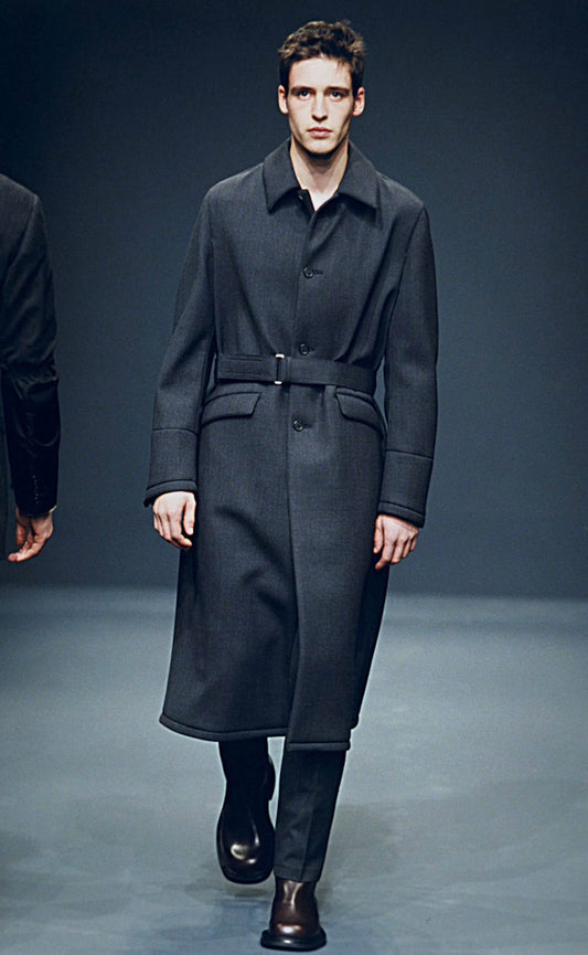Gucci Black Leather Trimmed Asymmetric Zipper Coat FW 2001 - XS