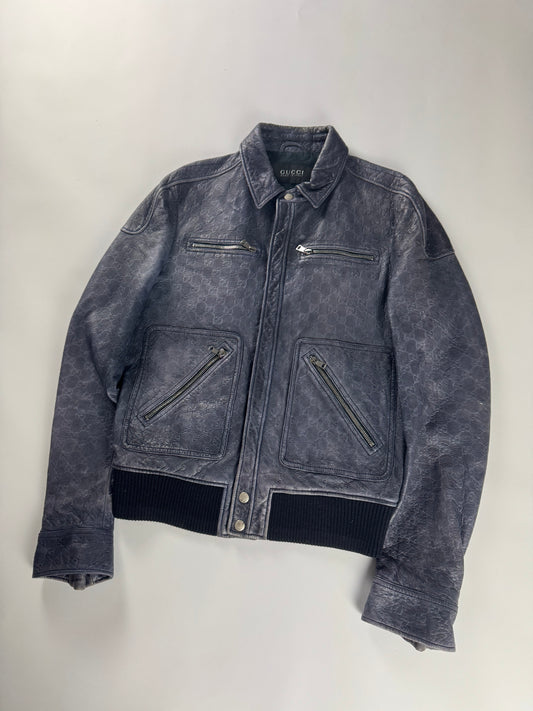 Gucci Blue Guccissima Monogram Leather Jacket 2010s - M
