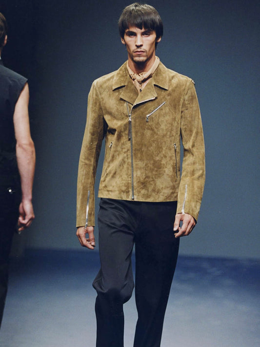 Prada Brushed Camel Suede Leather Perfecto Biker Jacket SS 2000 - M