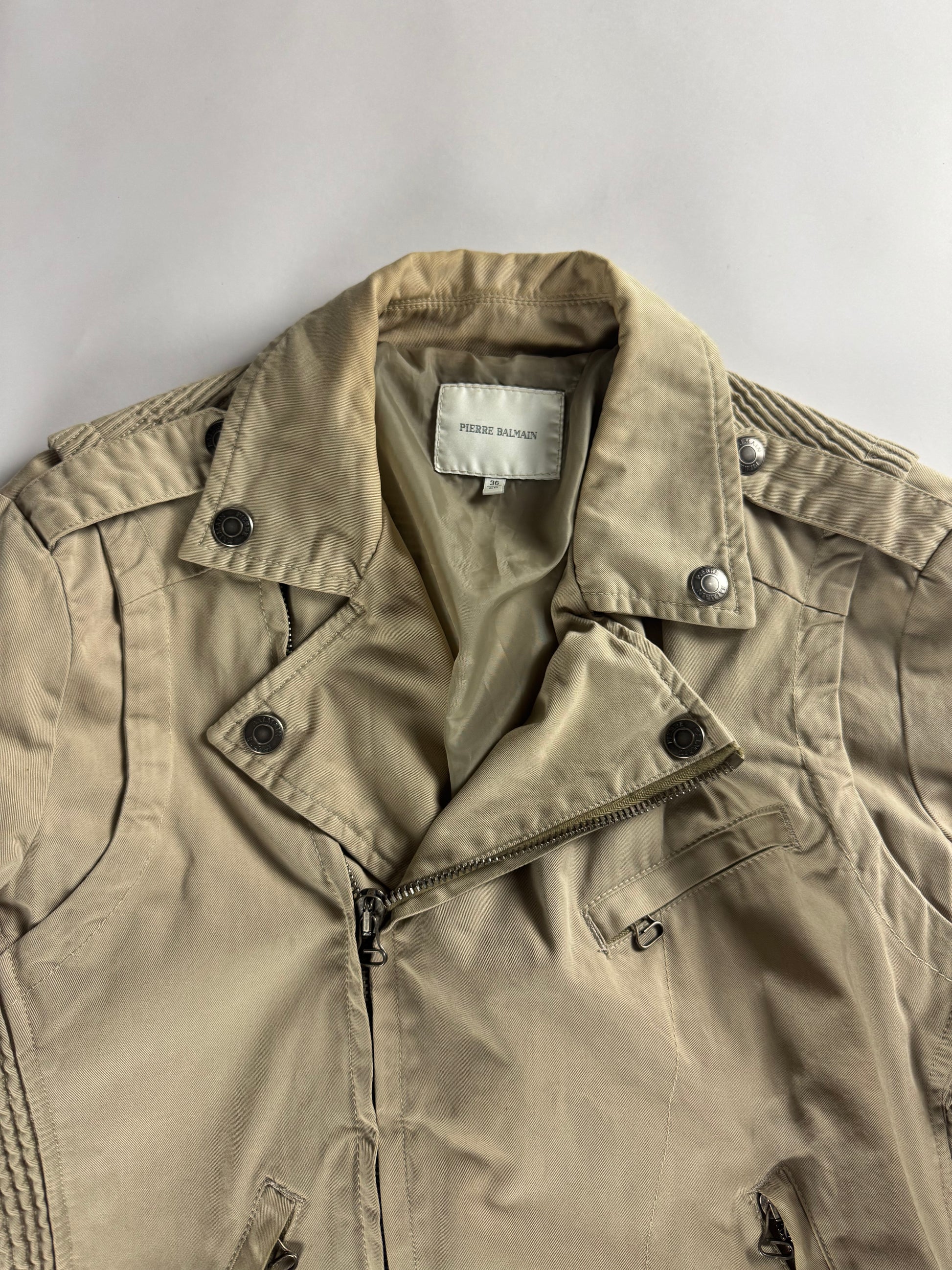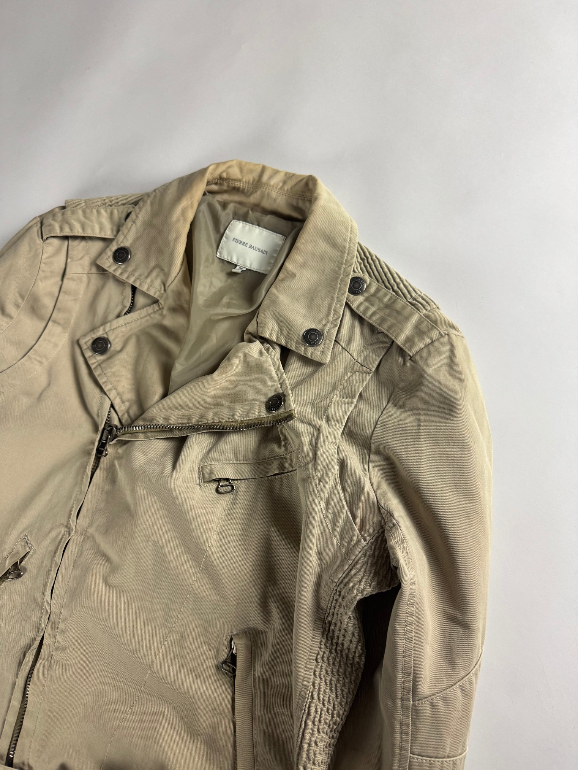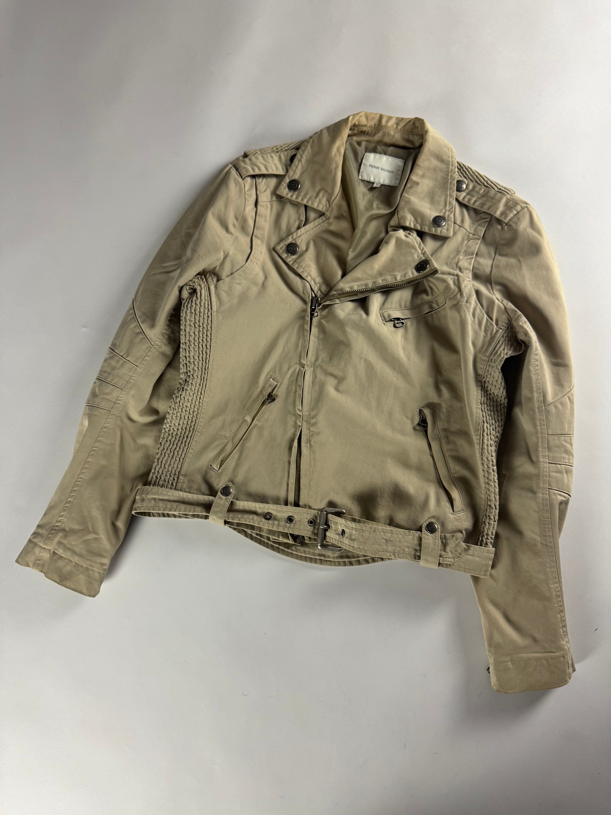 Balmain Tan Beige Belted Waist Biker Jacket 2010s - M