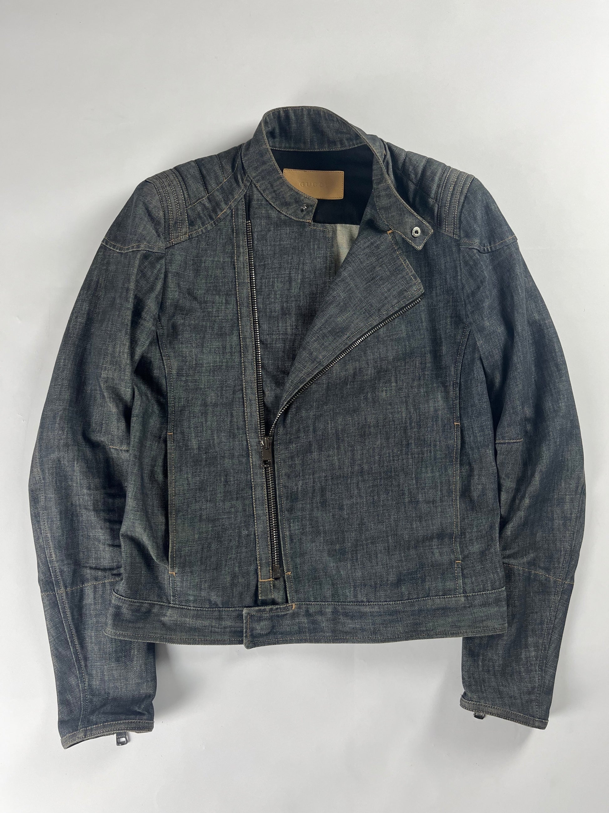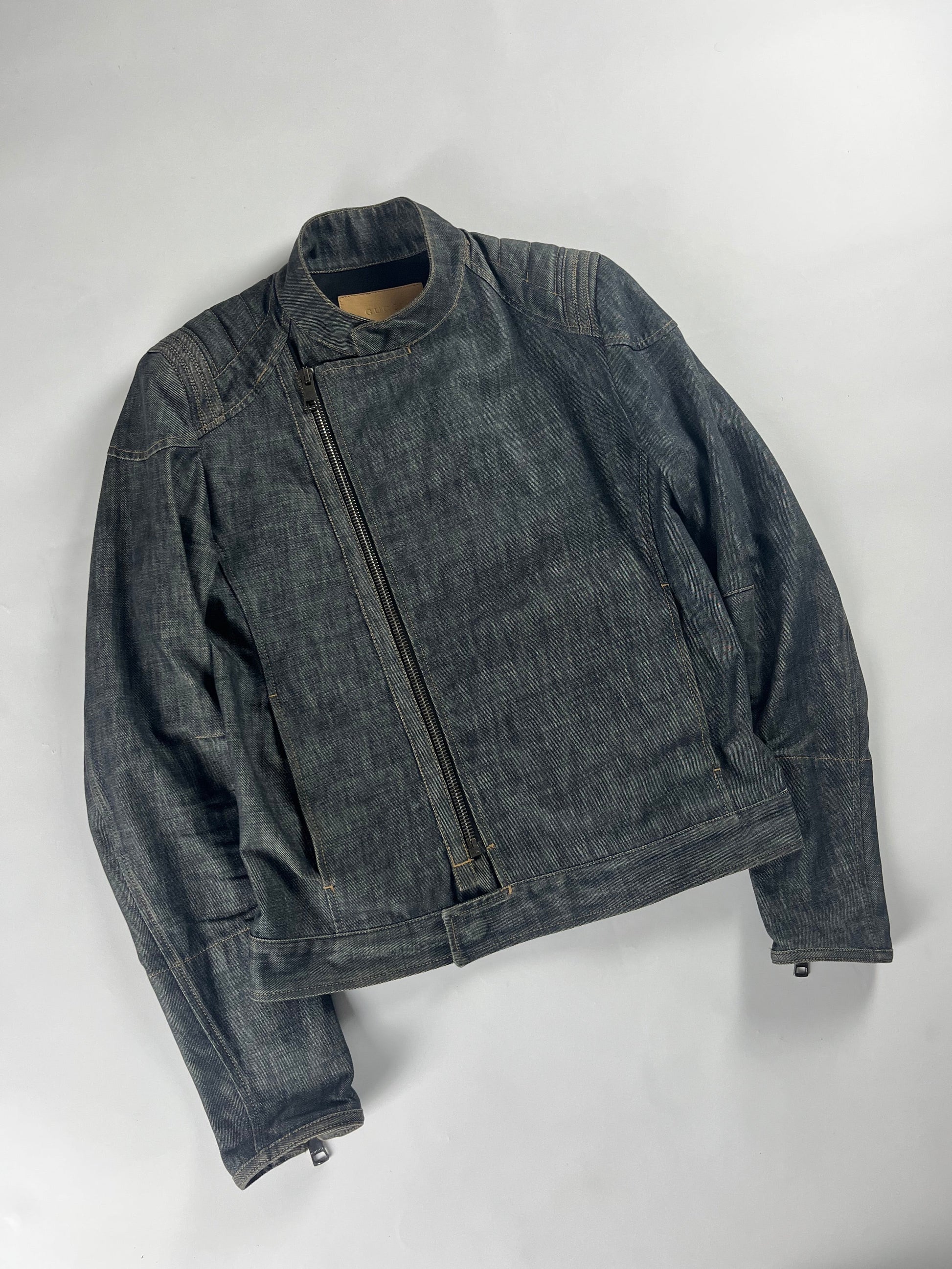 Gucci Asymmetrical Zip Raw Denim Biker Jacket SS 2002 - S