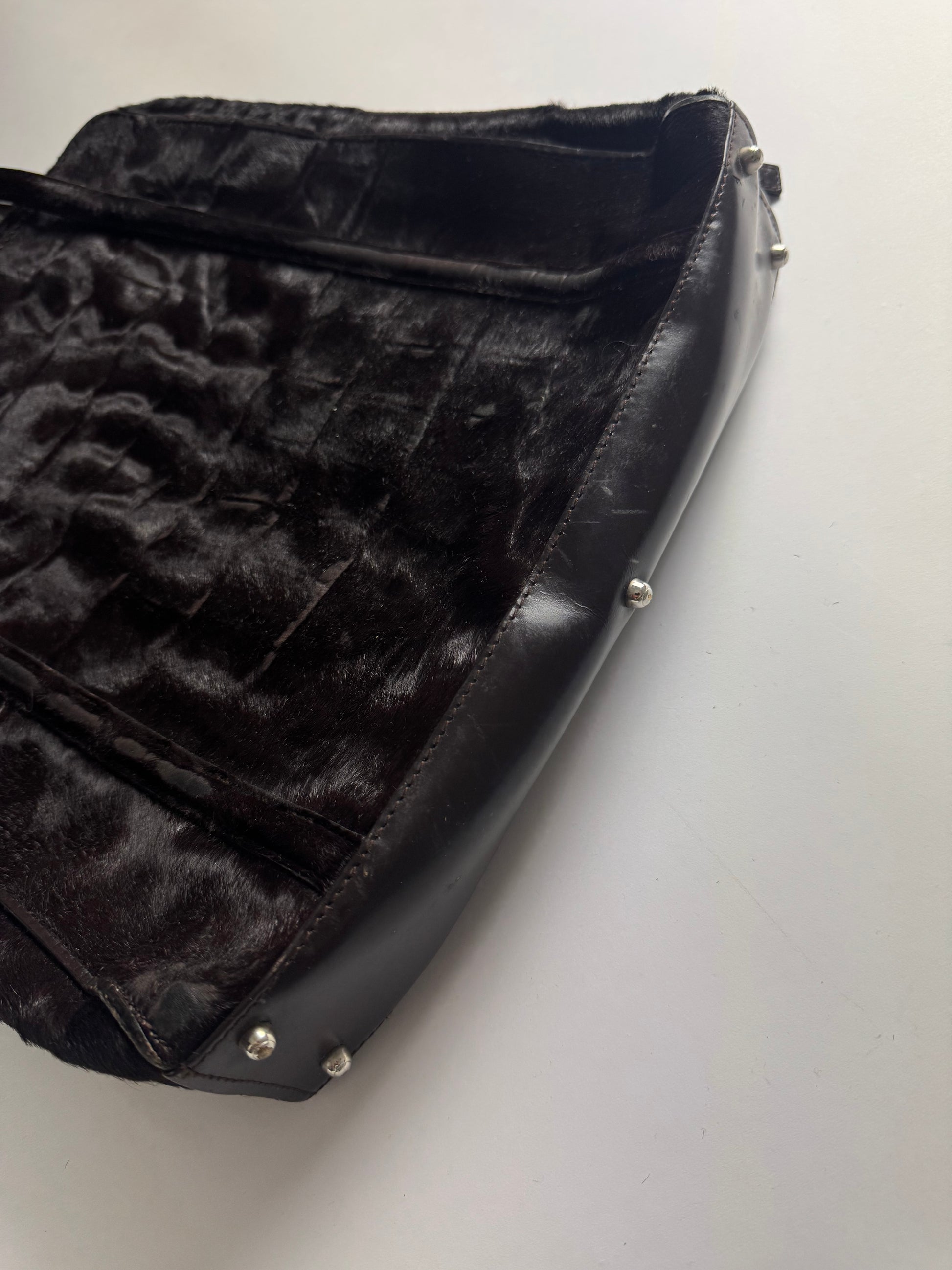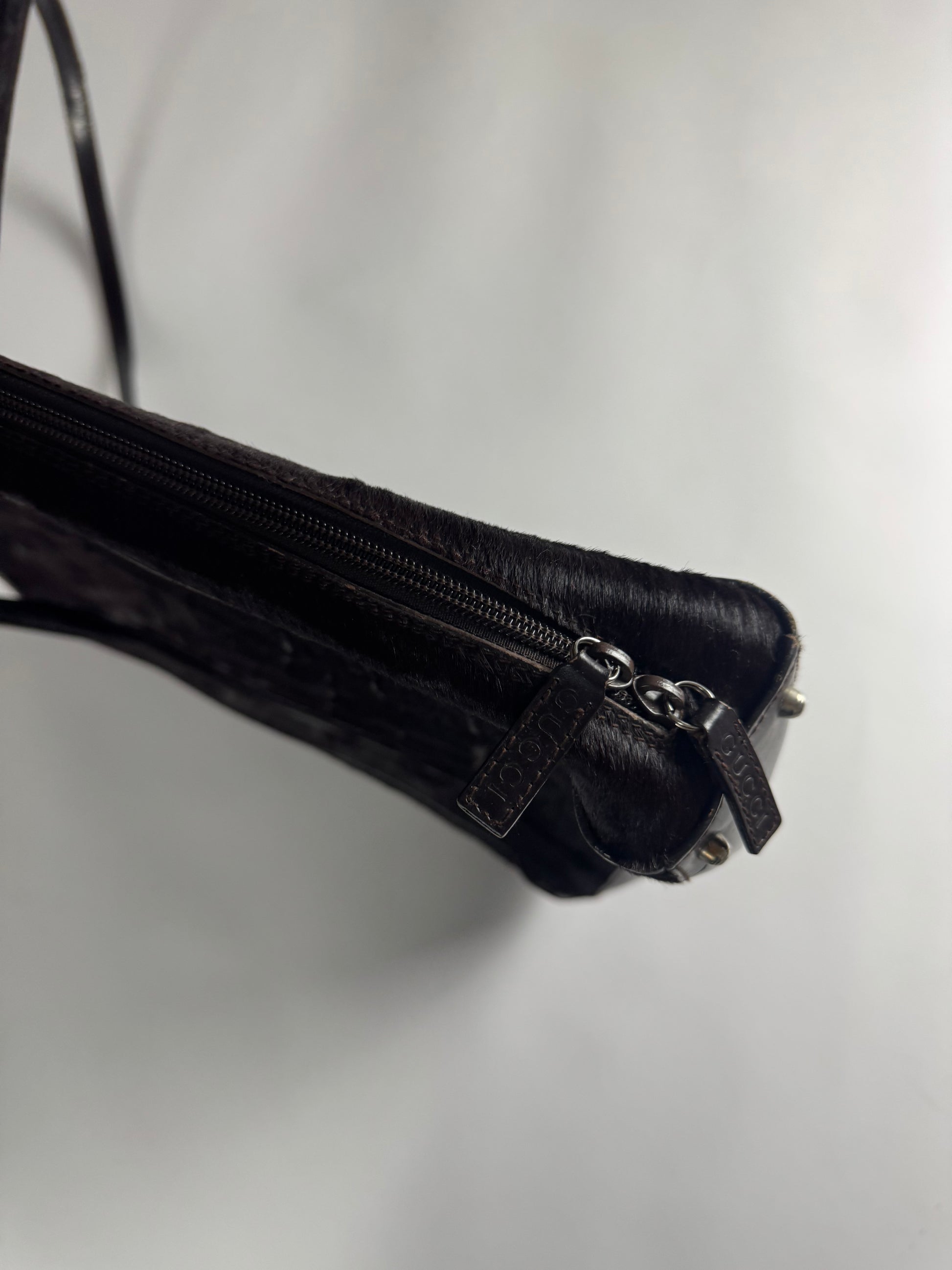 Gucci Tom Ford Brown Crocodile Cut Pattern Pony Hair Shoulder Bag FW 1996 - OS
