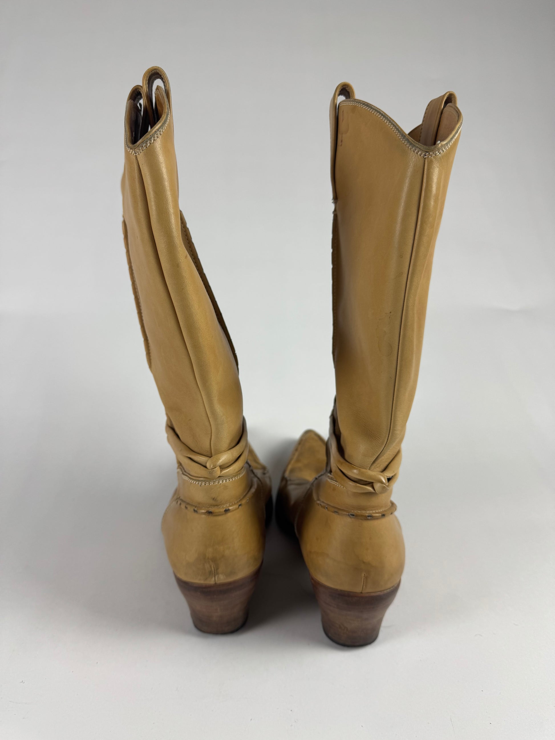 Gucci Tom Ford Camel Cream Leather Cowboy Western Boots SS 2004 - 45 EU