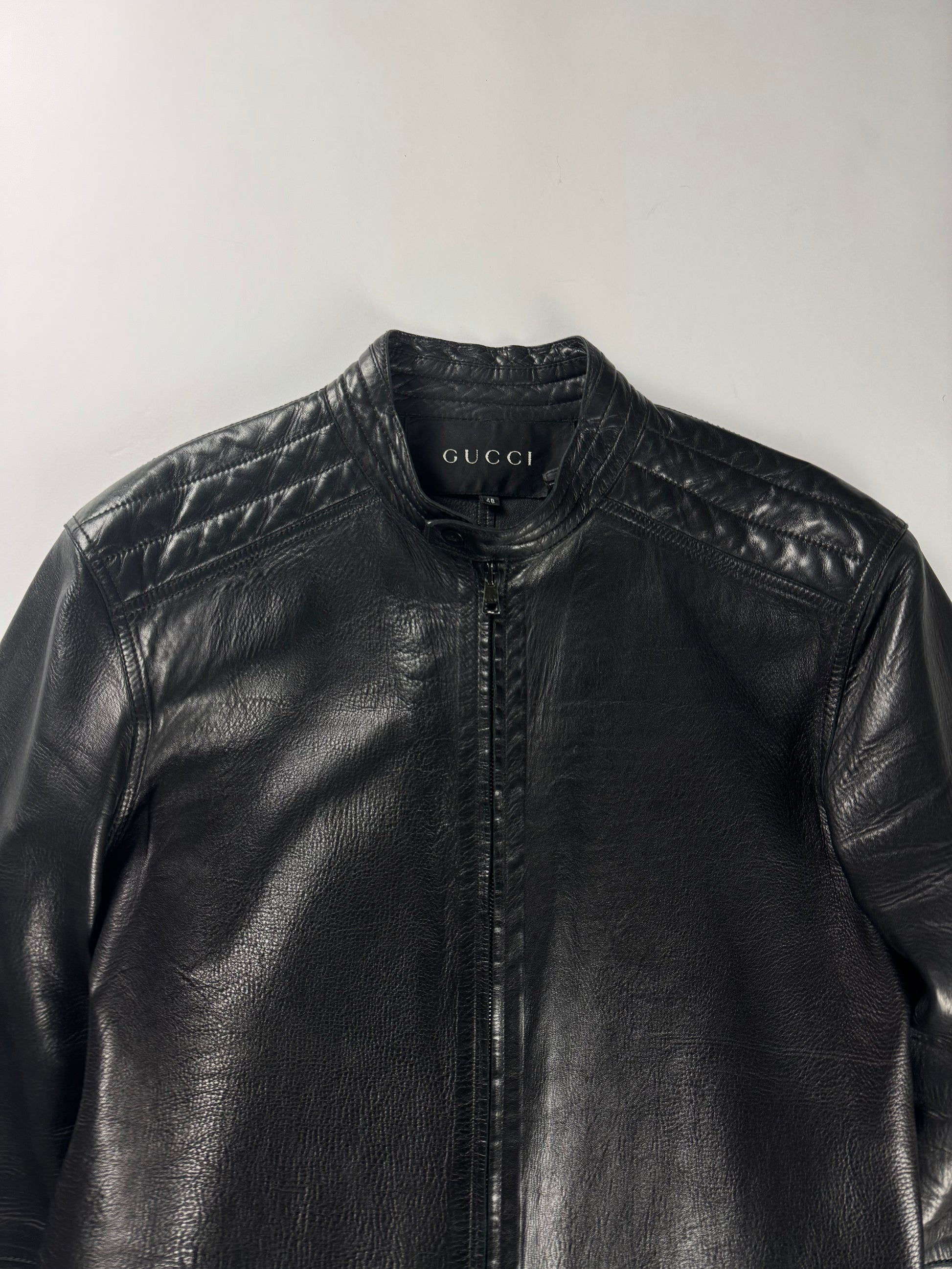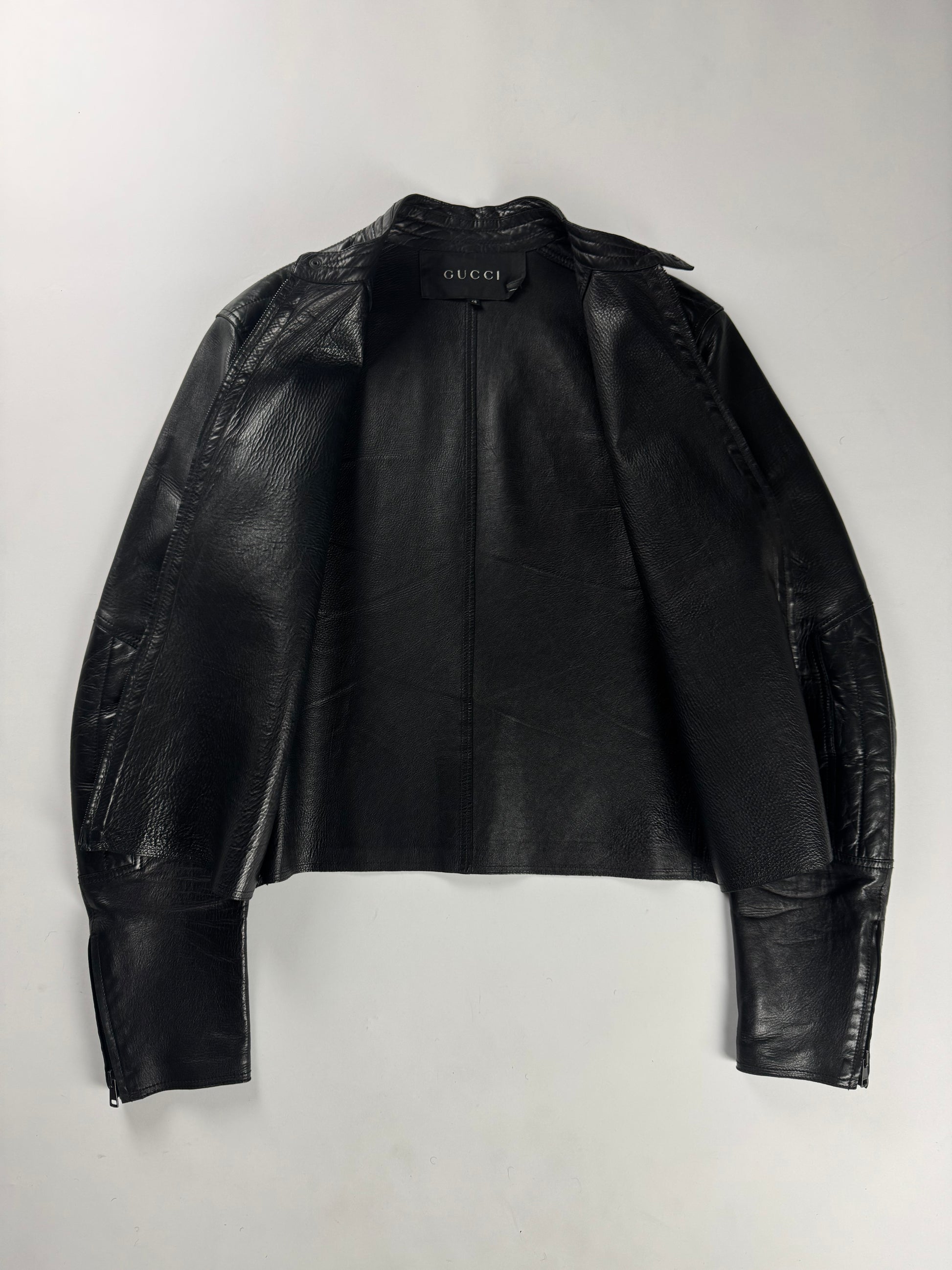 Gucci Tom Ford Pure Dark Soft Leather Padded Shoulder Biker Jacket SS 1999 - M
