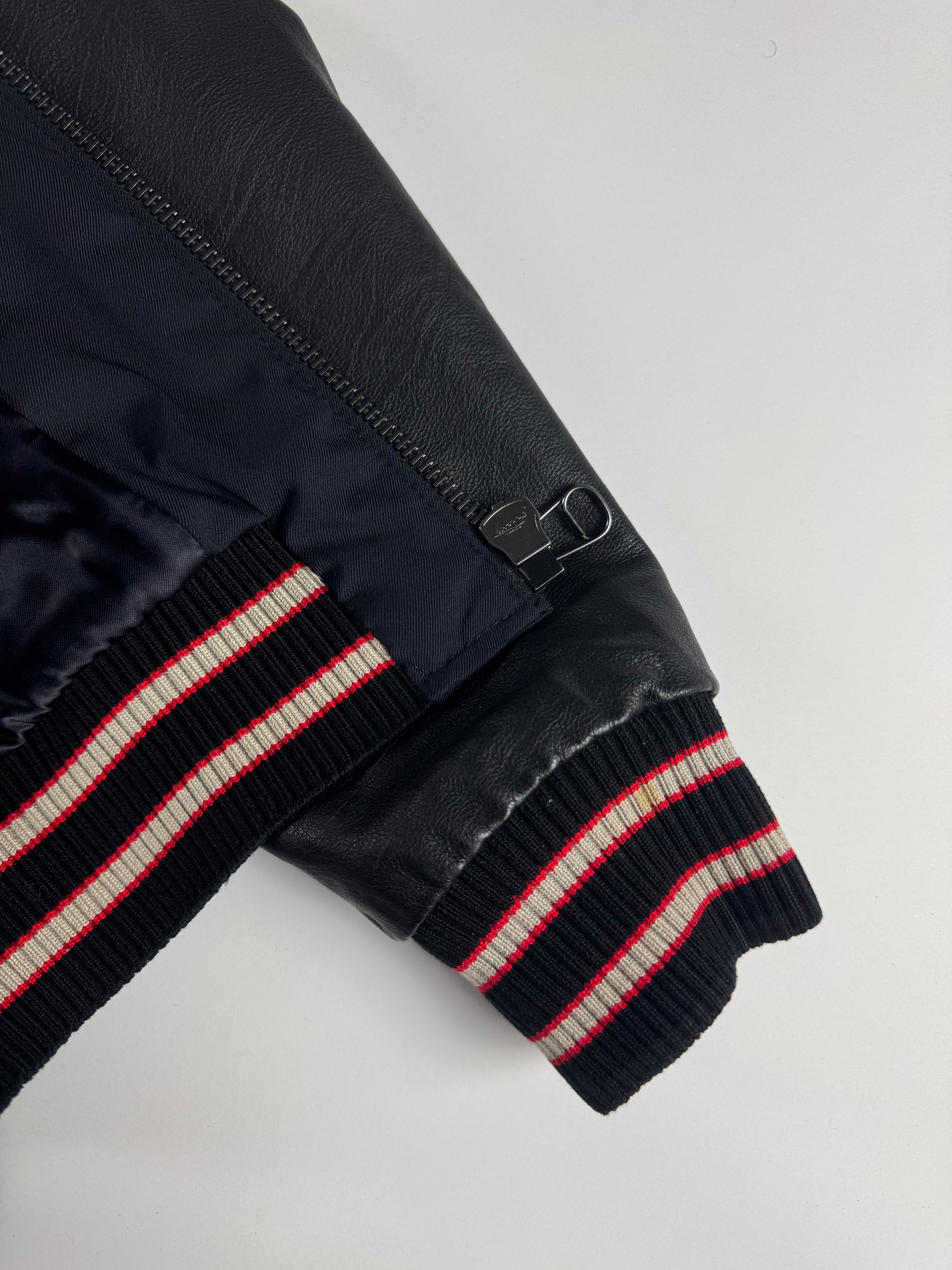 Lanvin Full Zip Leather Sleeve Bomber Jacket - M