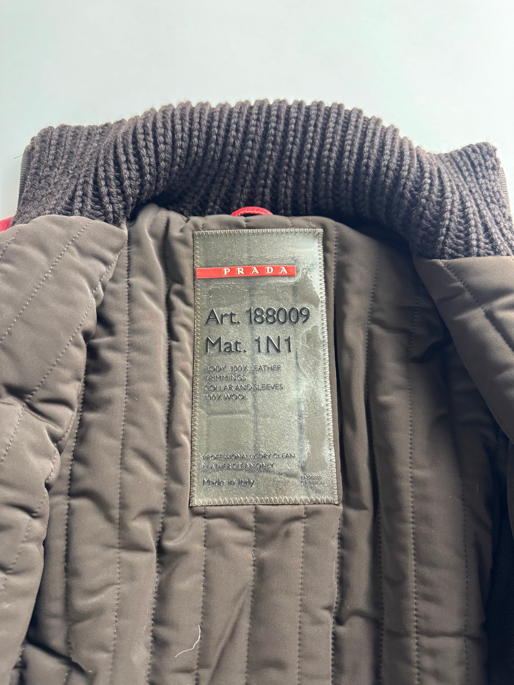 Prada Wool Hybrid Red Leather Patch Turtleneck Jacket SS 2000 - S