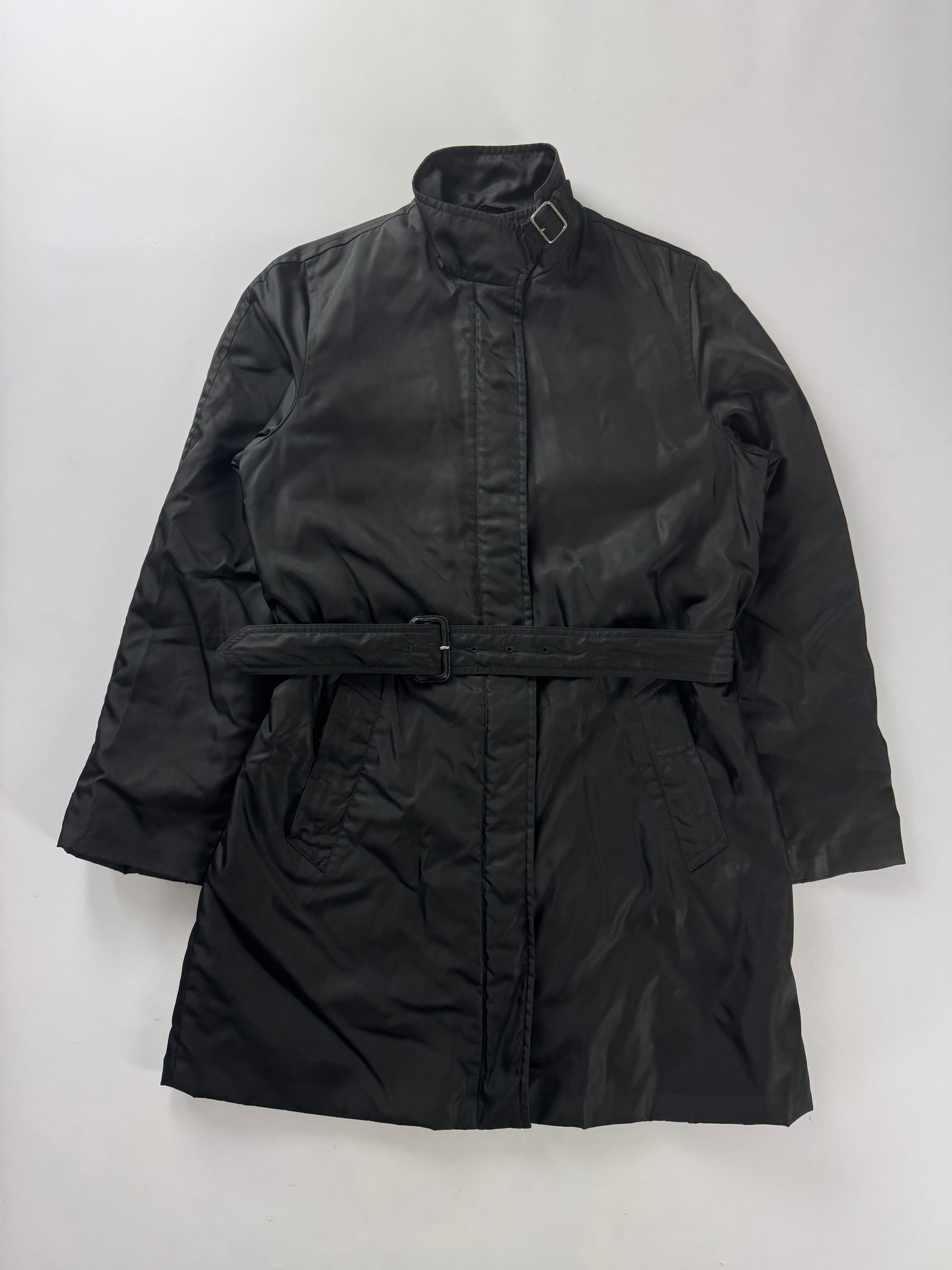 Prada Back Triangle Logo Belted Collar Nylon Trench Coat FW 2000 - S