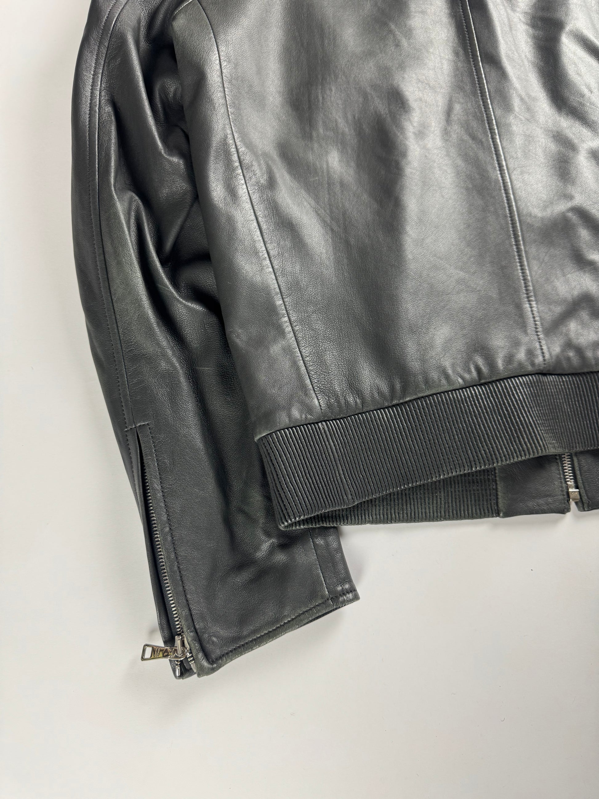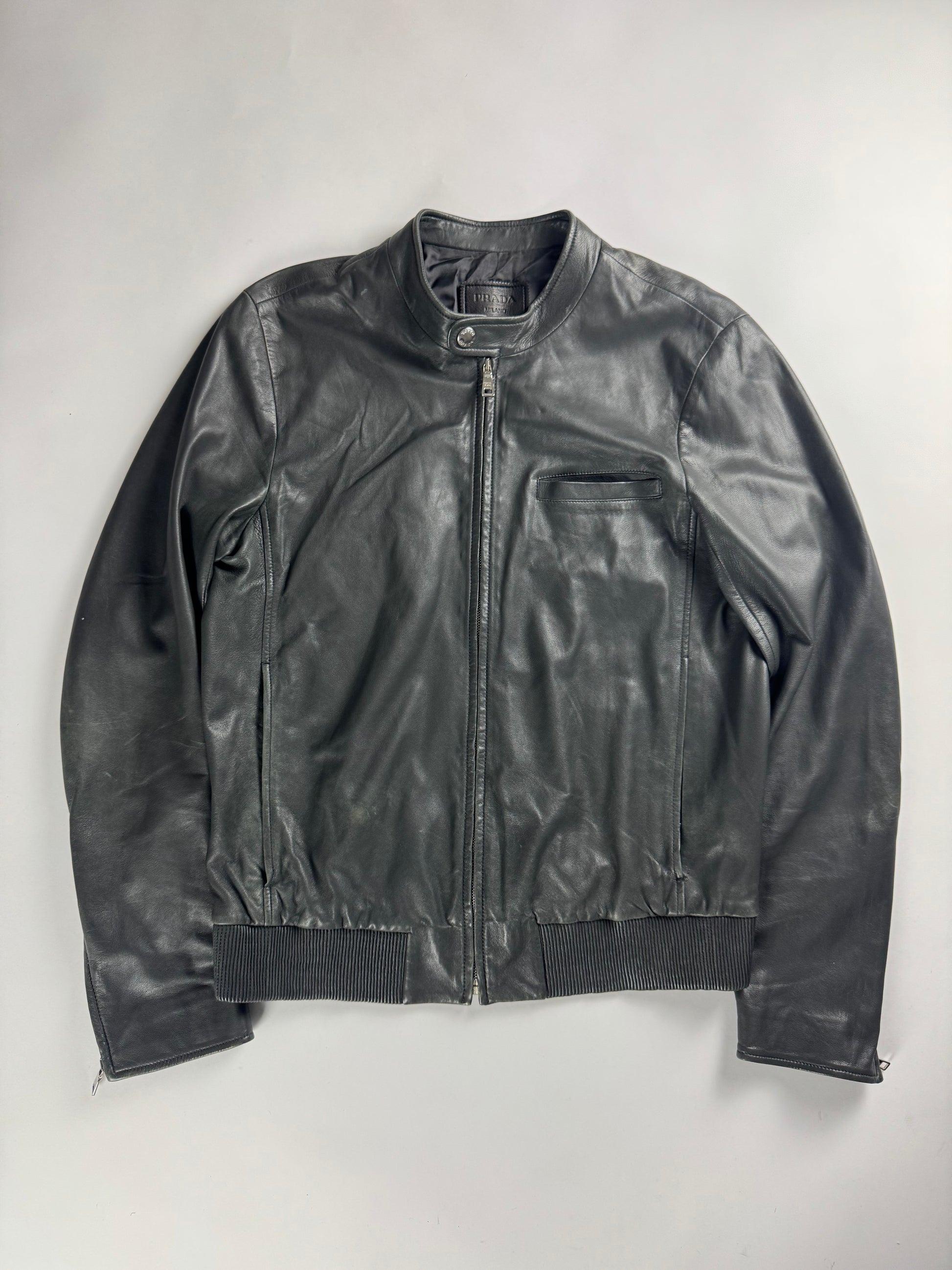 Prada Dark Grey Smooth Leather Minimalist Side Pocket Moto Jacket FW 2012 - M
