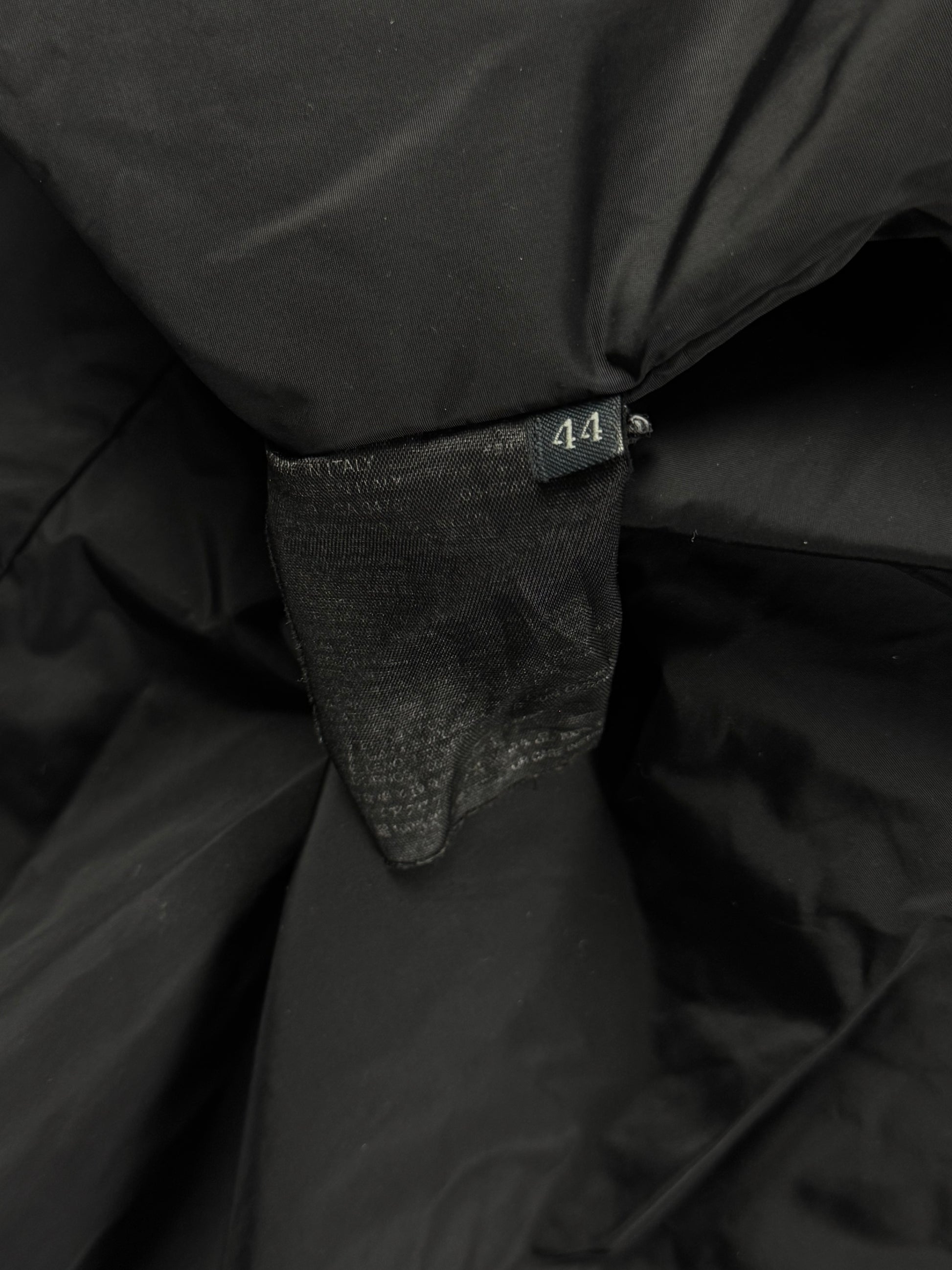 We love this jacket with leather sleeves from our pieces collection made by Prada in the 2000s.