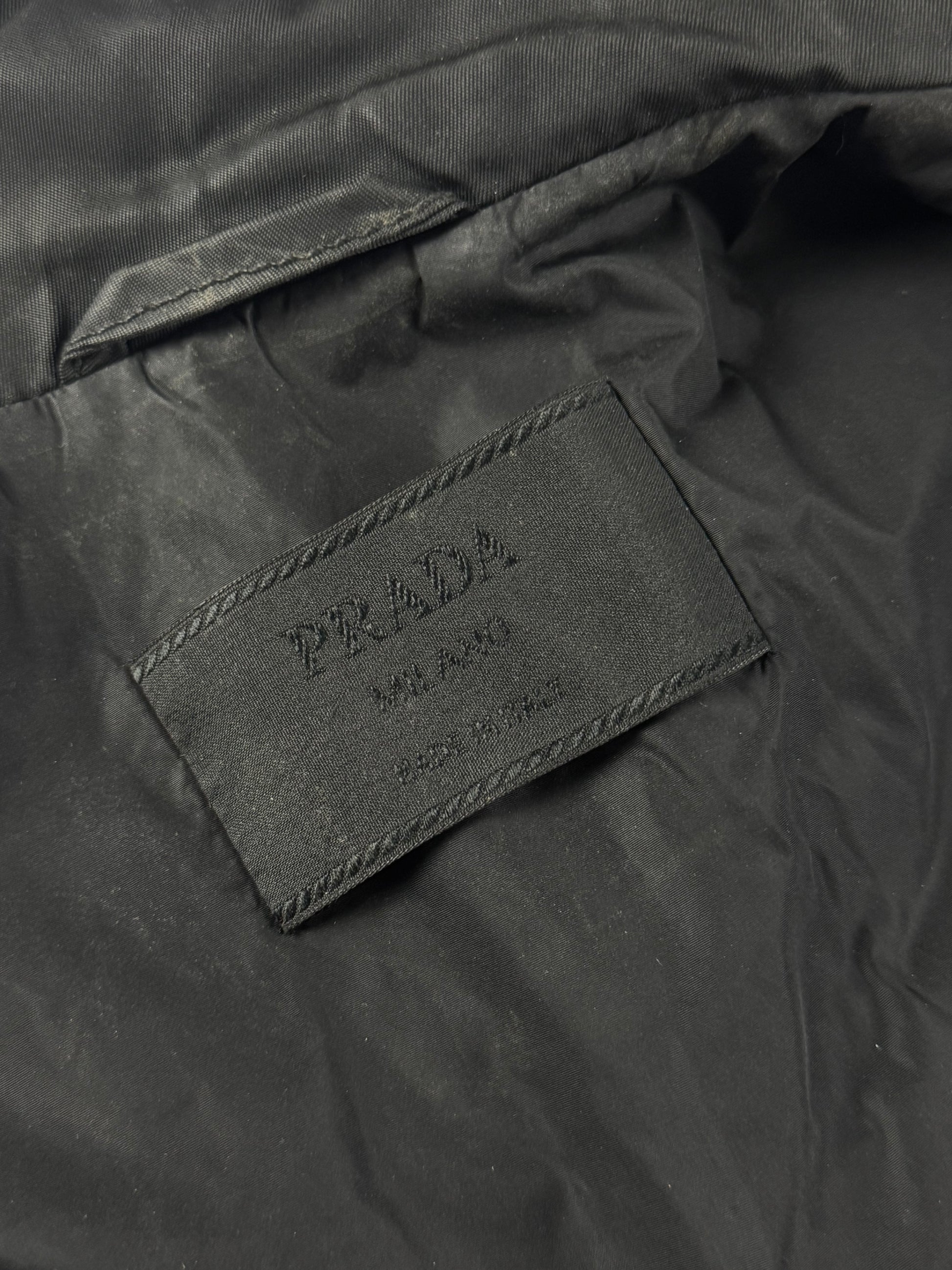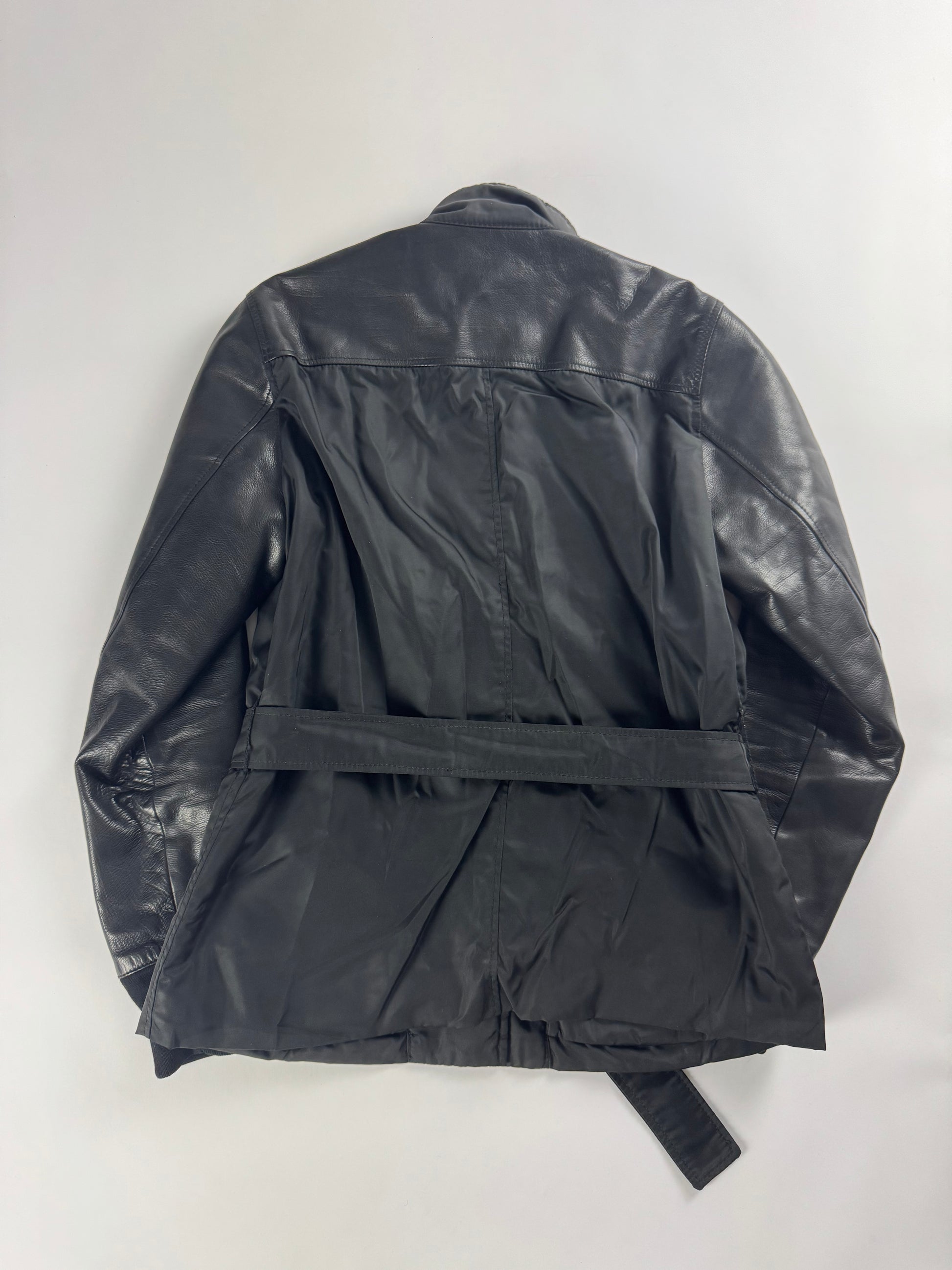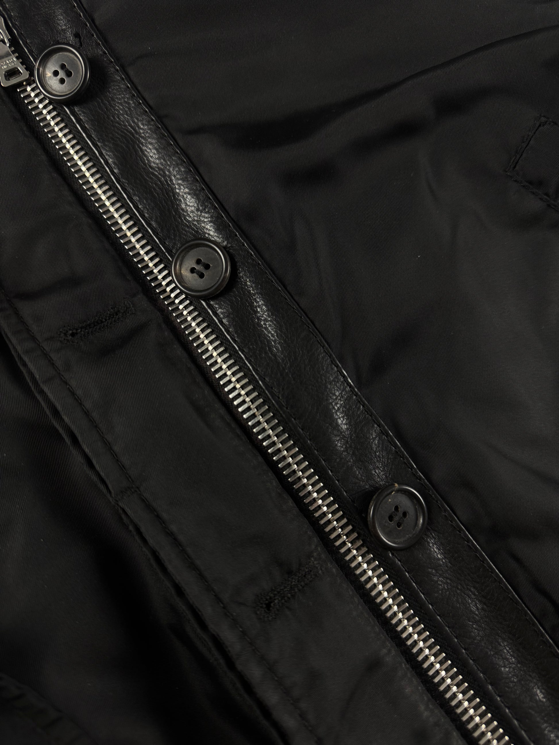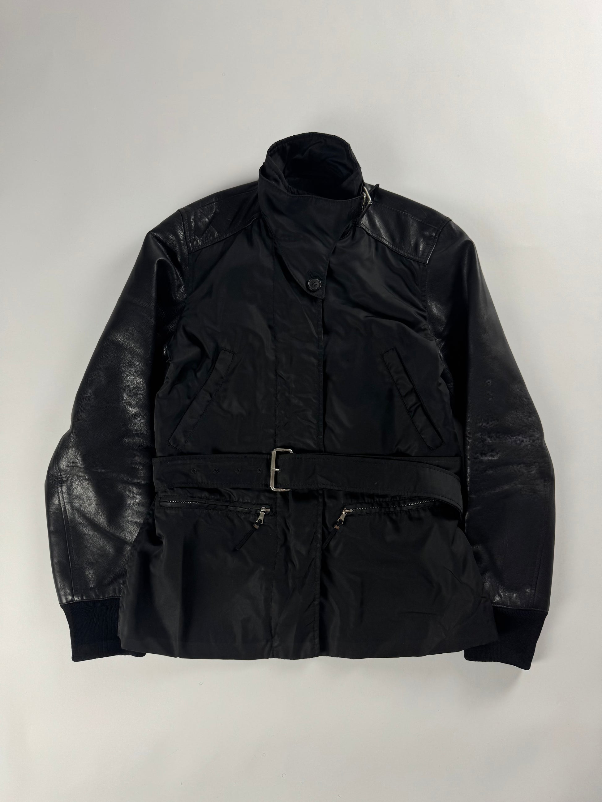 Prada Leather Sleeves Belted Collar Pilot Jacket 2000s - S