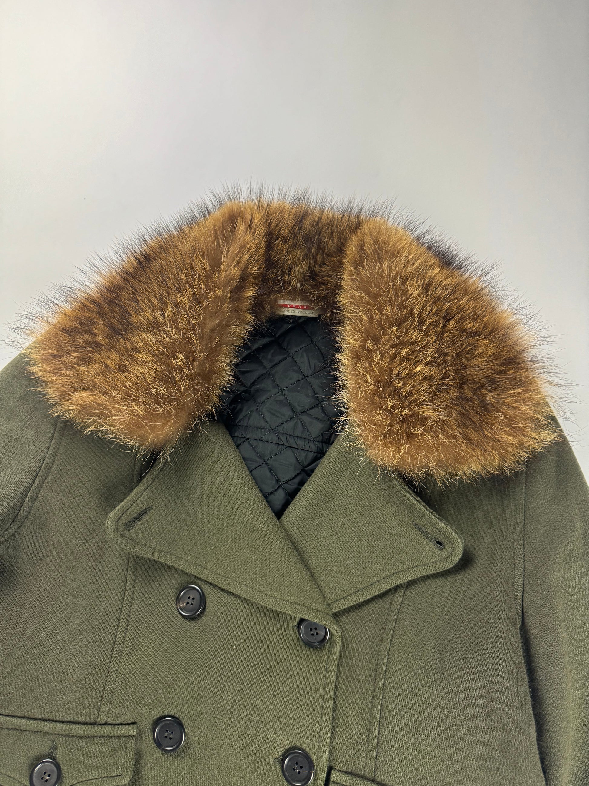 Prada Raccoon Fur Collar Old Army Crop Jacket SS 2006 - M