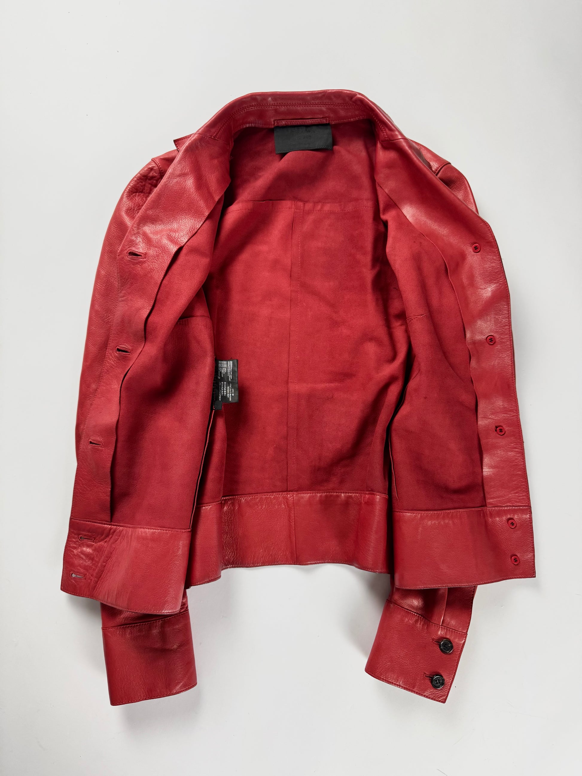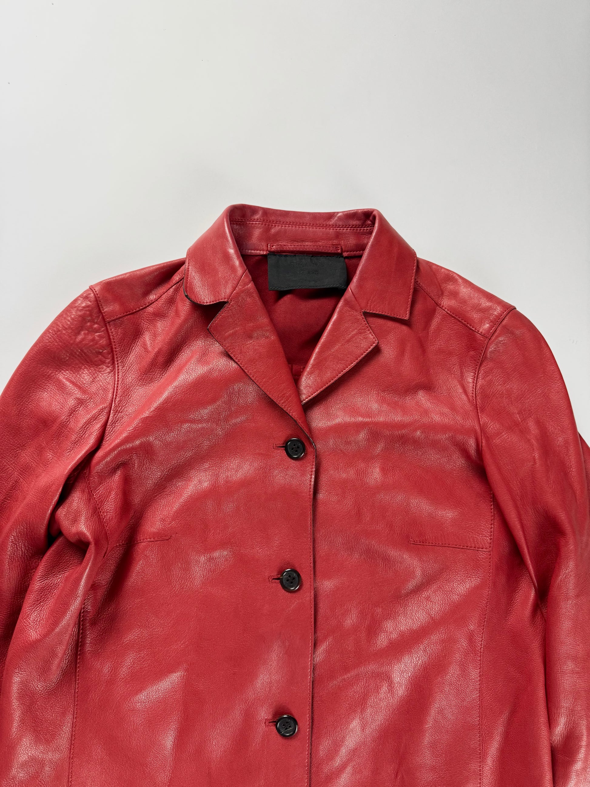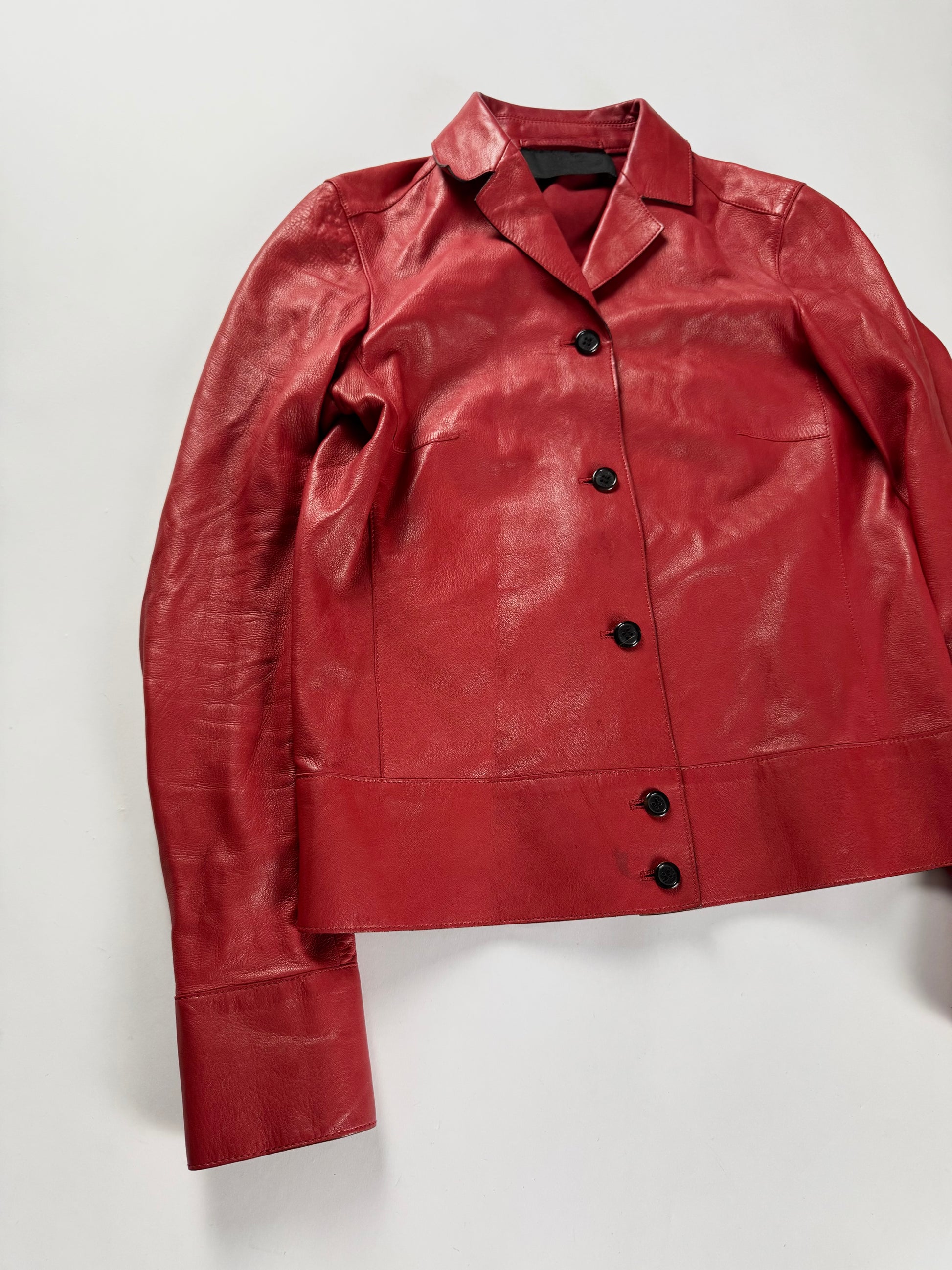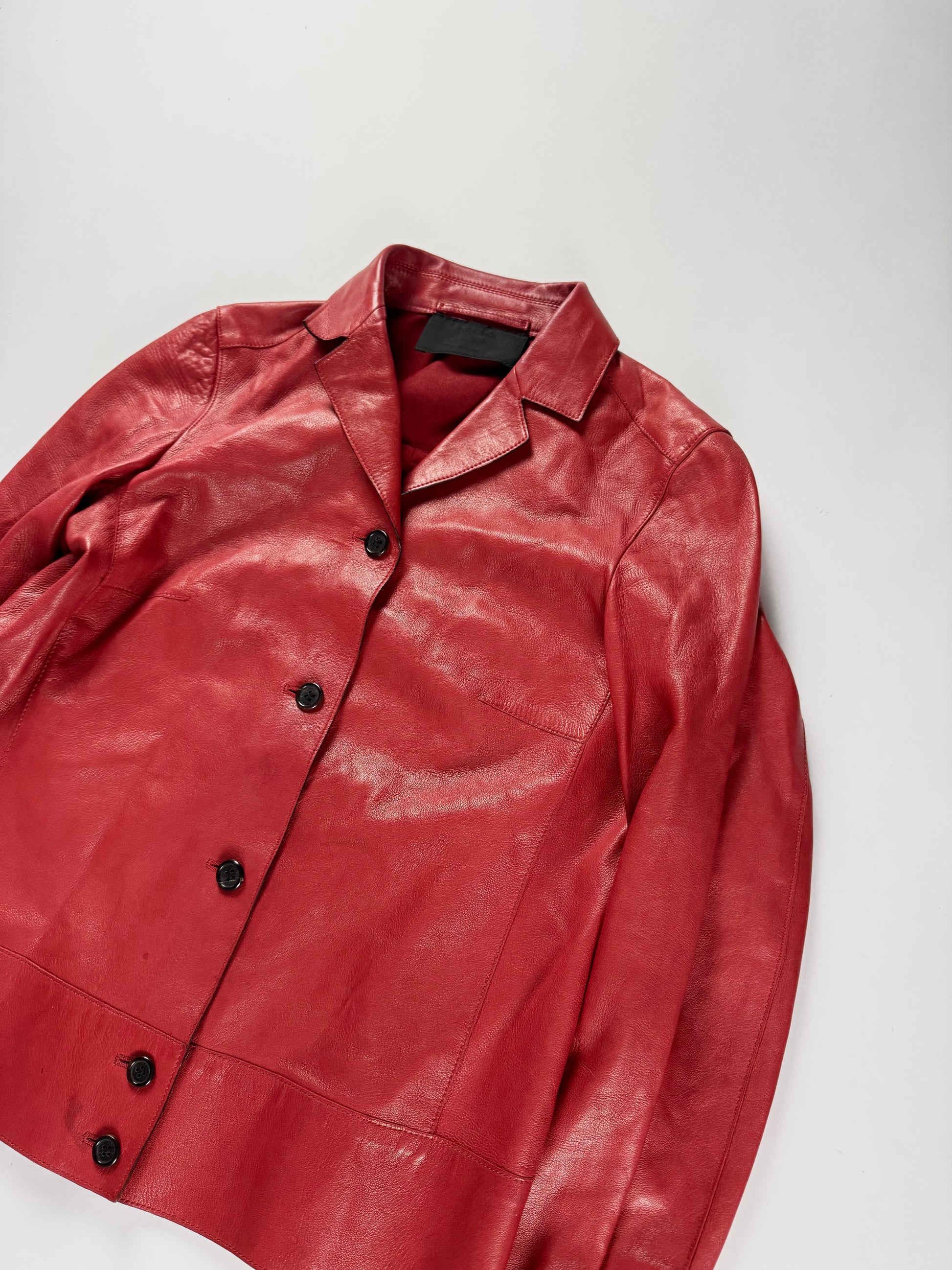 Prada Red Leather Minimalist Buttoned Jacket FW 2000 - XS