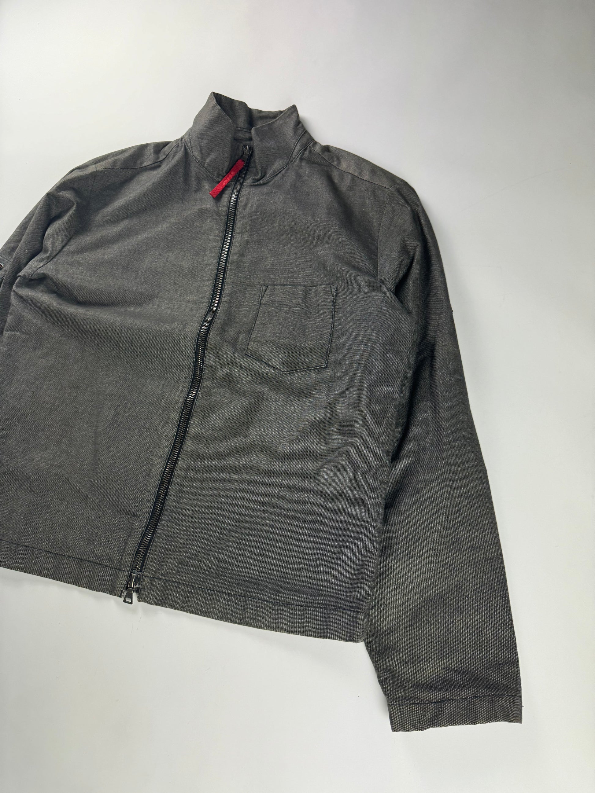 Prada Sample Smoke Double Zip Oversize Cotton Jacket 2000s - L